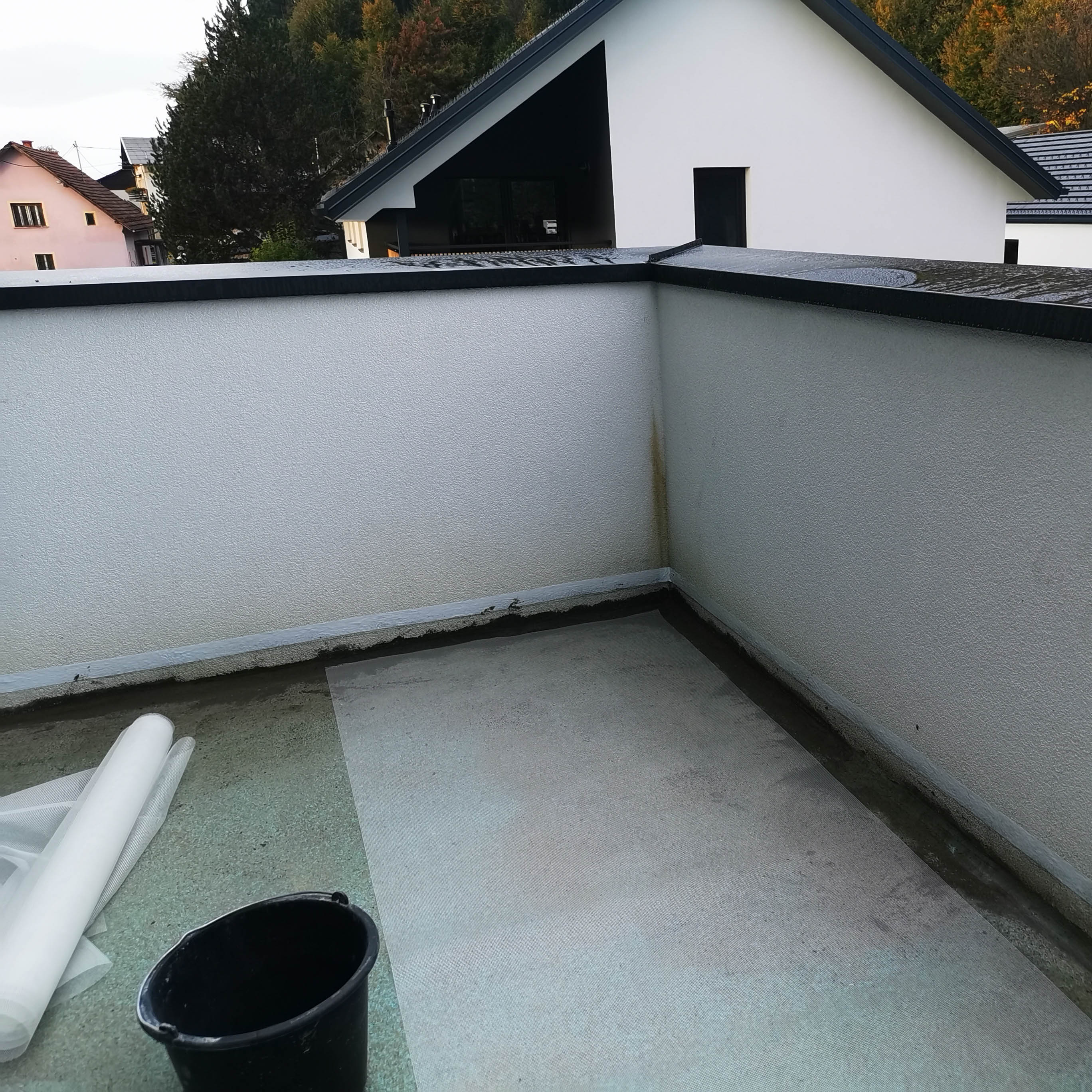 Z izvedenim hidroizolacijskim sistemom smo v celoti zaščitili ravno površino terase ter jo pripravili za lepljenje keramike ali drugih materialov, ki bodo uporabljeni kot končni izgled. Z razliko od ostalih podobnih materialov zagotavljamo zaščito pred UV žarki ter elastičnost, ki pokriva novo nastale razpoke v betonu ali estrihu.