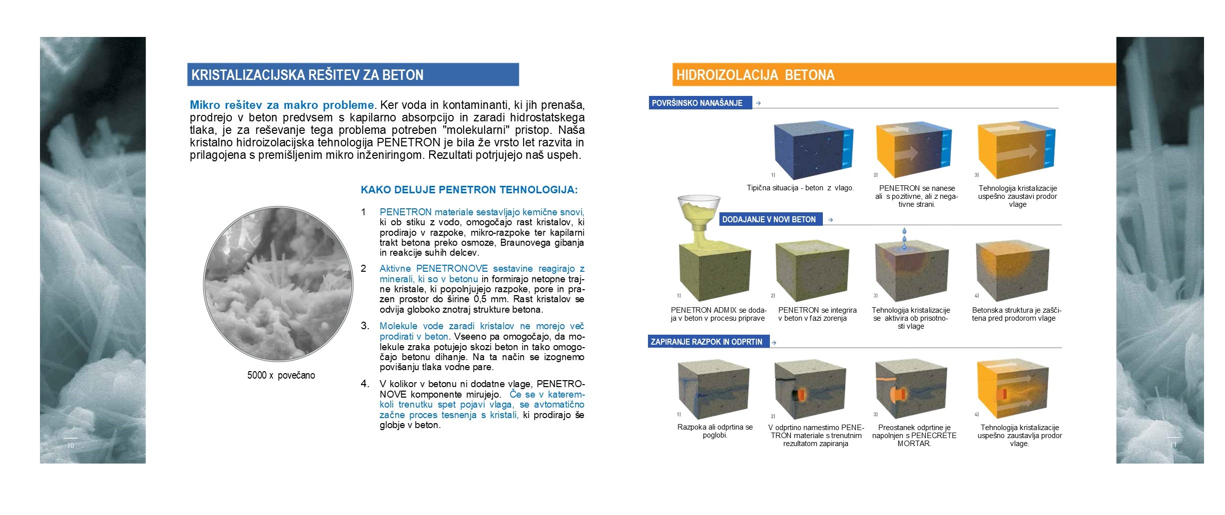 Tehnične prednosti hidro-izolacijskega sistema PENETRON: